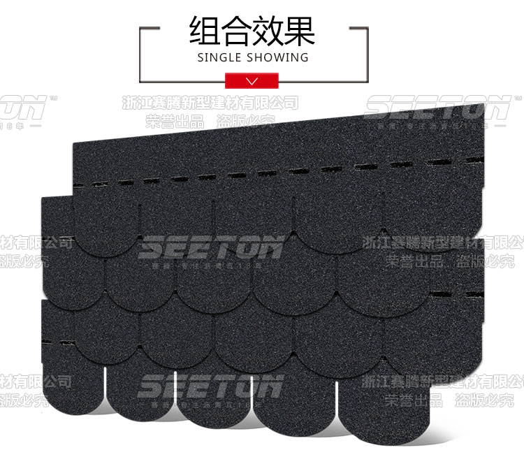 鱼鳞型采用弧形五垂片设计,具有很强的适应性,能够安装有弯曲和不同坡度的屋面上,特别适用于10度以上圆球形,锥形,扇形及不规则坡屋顶应用。