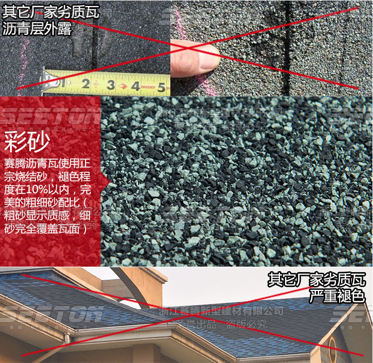 常规单层标准型沥青瓦采用三垂片设计,再配以特有的赛腾跳色技术,大大增强单层瓦的美观程度,层次感立体感将你带入一个全新的视觉盛宴。 使用年限:20年 执行标准:GB/T20747-2015
