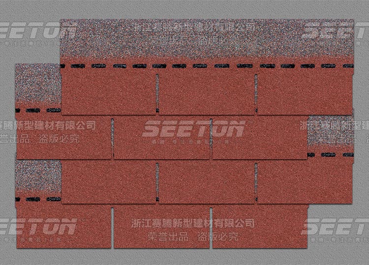 常规单层标准型沥青瓦采用三垂片设计,再配以特有的赛腾跳色技术,大大增强单层瓦的美观程度,层次感立体感将你带入一个全新的视觉盛宴。 使用年限:20年 执行标准:GB/T20747-2015